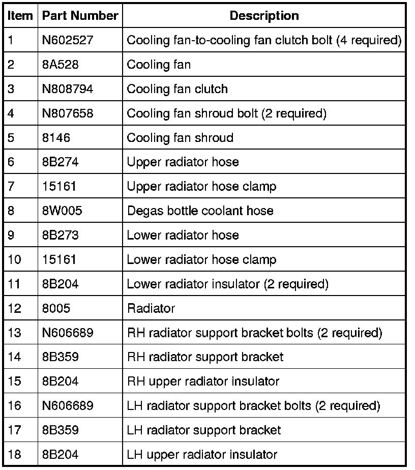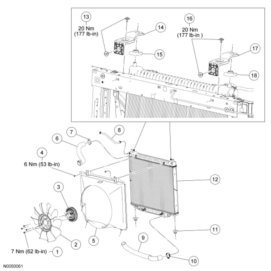 Radiator and Cooling Fan - Exploded View, Gasoline Engines