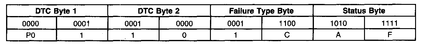 A list of failure type bytes is defined by SAE J2012 but is not described here because the PCM does not use the failure type byte.