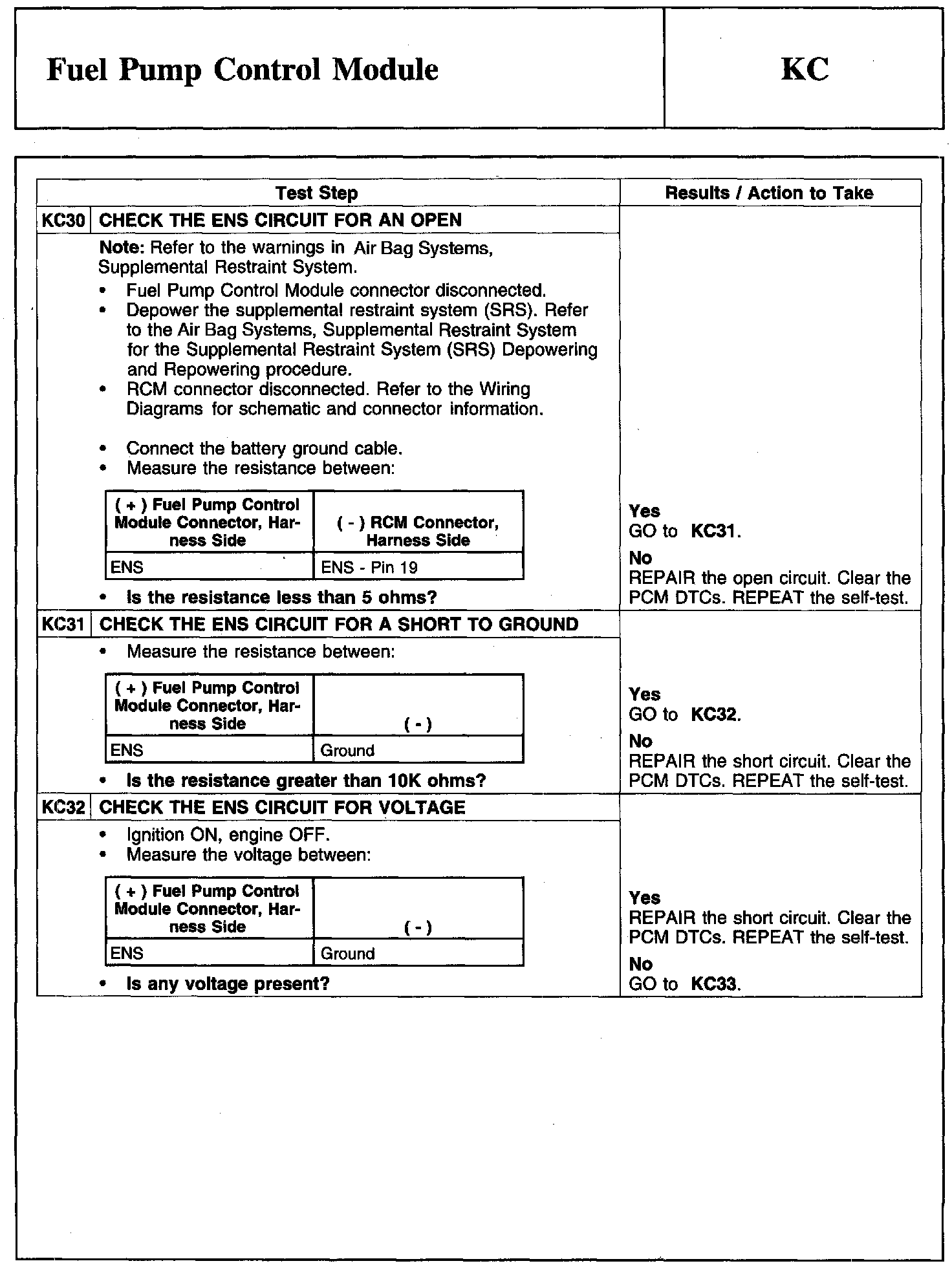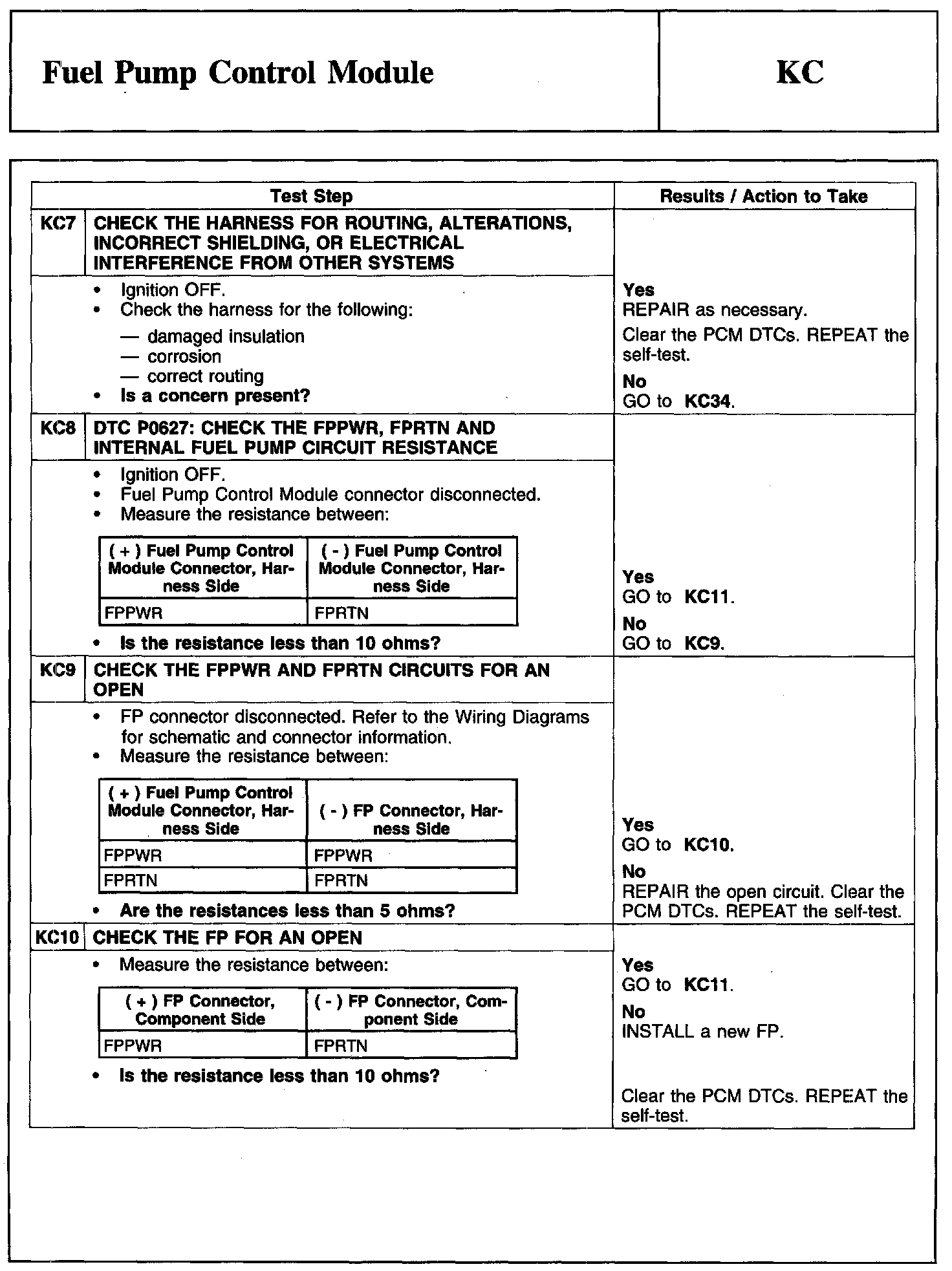PINPOINT TEST KC: FUEL PUMP CONTROL MODULEFuel Pump Control Module Connector: