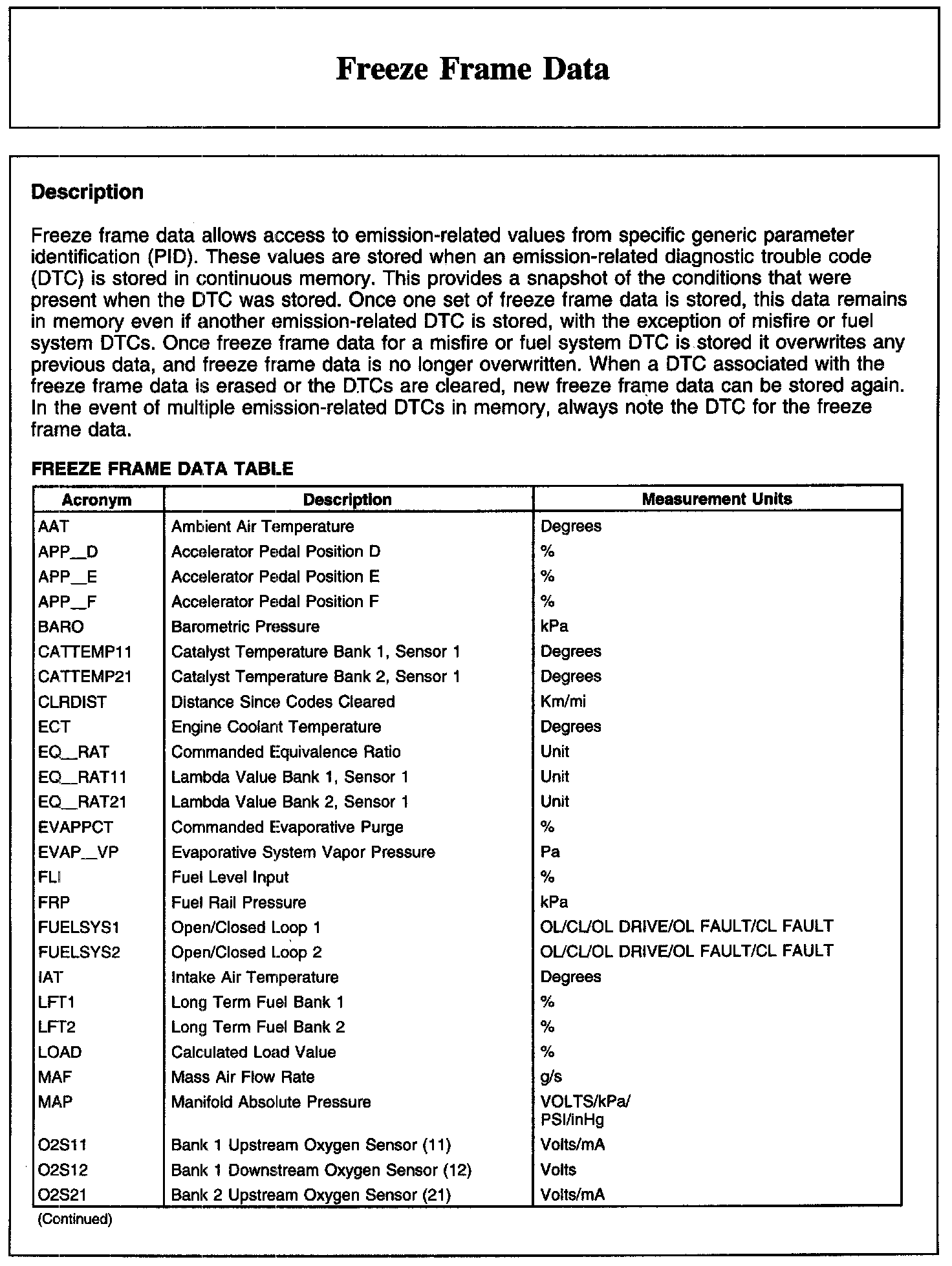 FREEZE FRAME DATA