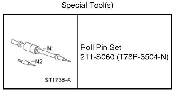 6. Using the Roll Pin Set, remove the manual valve detent lever shaft retaining pin.