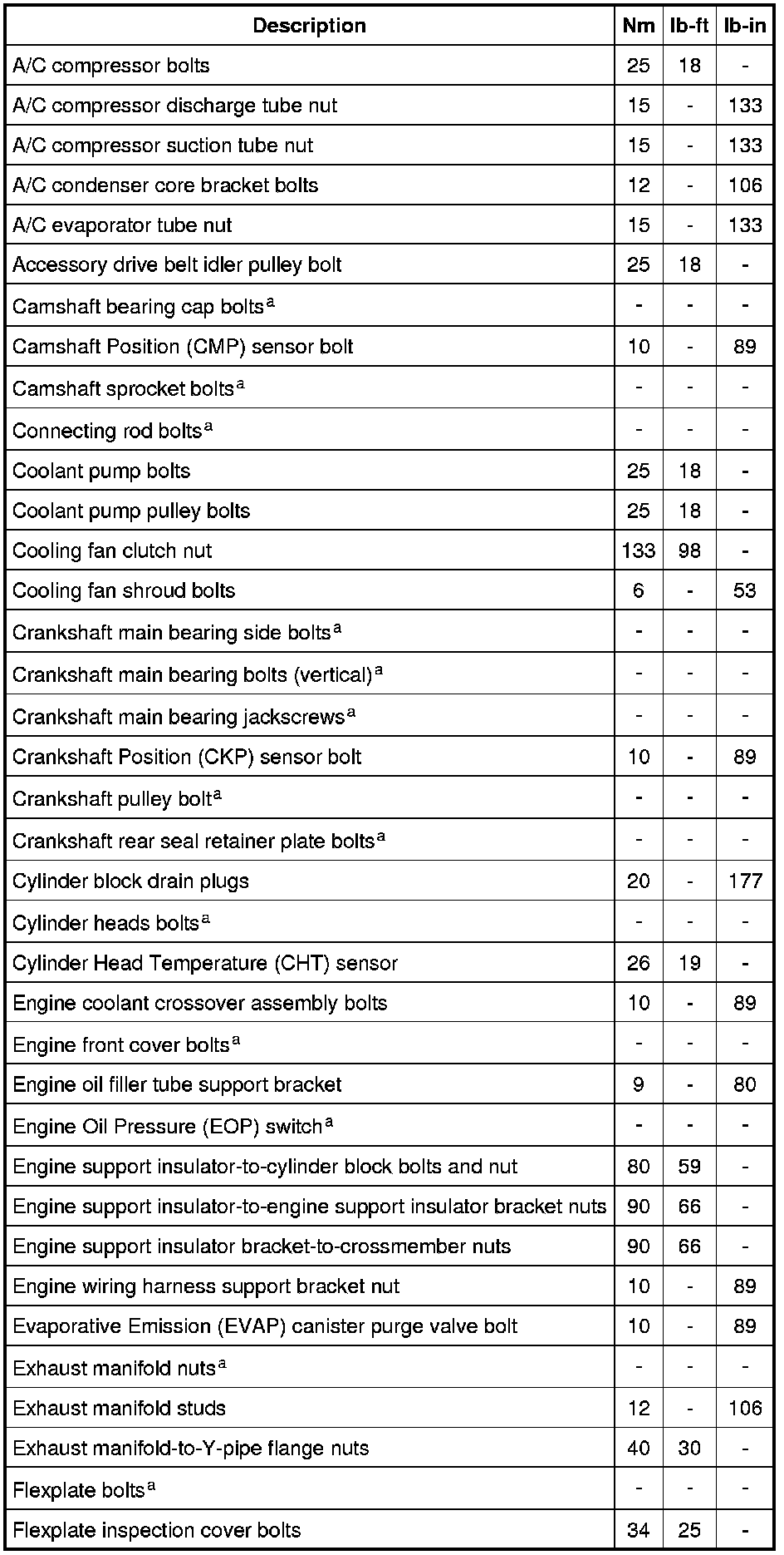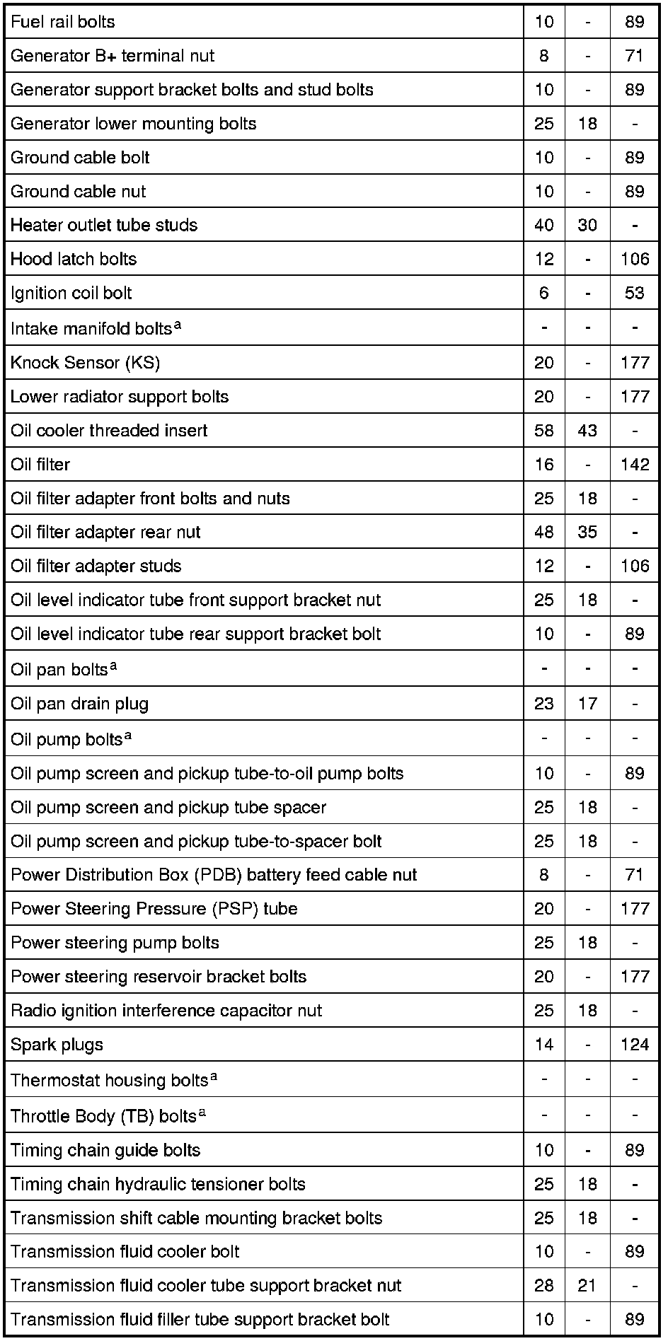 Torque Specifications