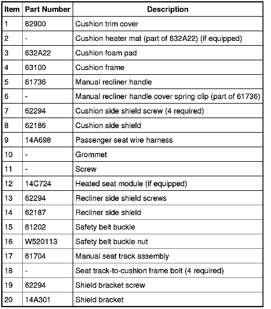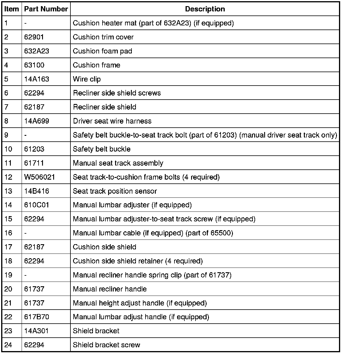 NOTE: To install a new Occupant Classification System Module (OCSM) or an Occupant Classification Sensor (OCS) weight sensor bolt, refer to the appropriate procedure in Restraint Systems.