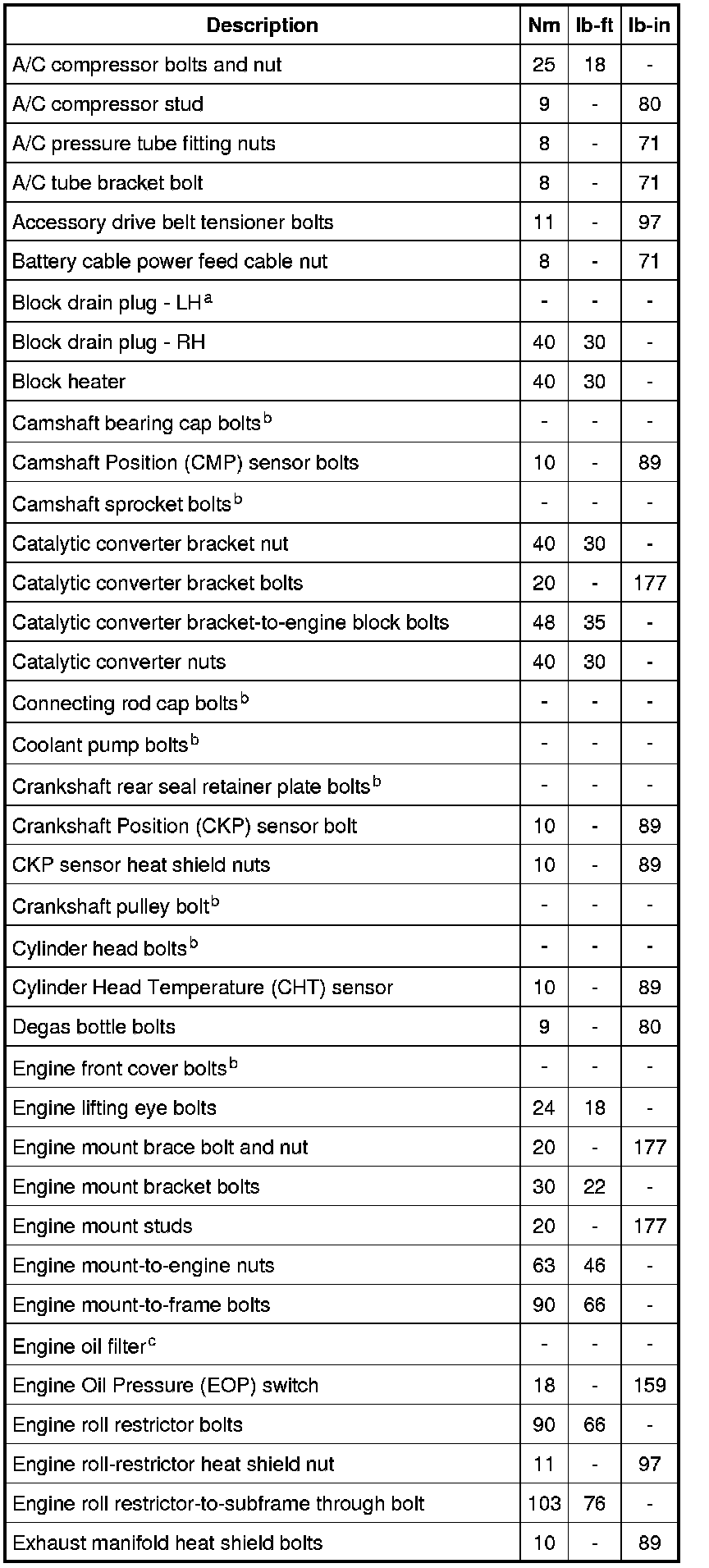 Torque Specifications