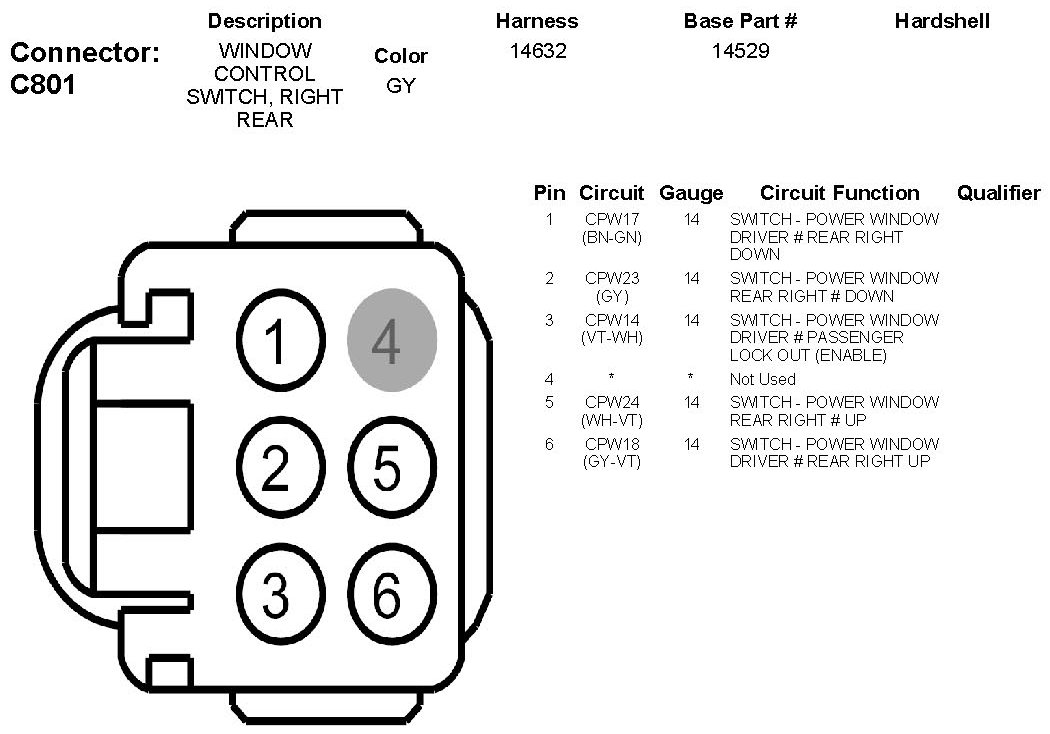 Window Control Switch, Right Rear