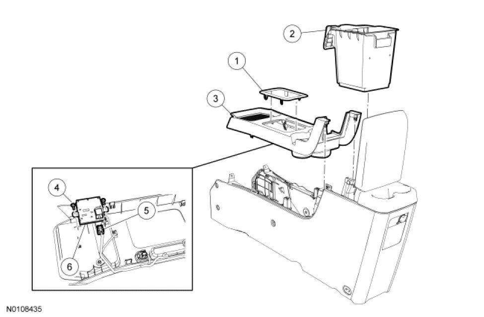 5. Remove the floor console storage bin.