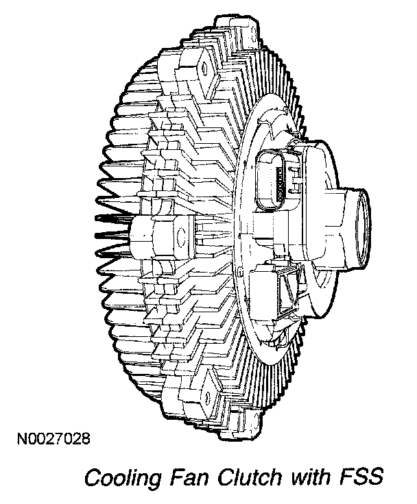 The FSS is a Hall-effect sensor that measures the cooling fan clutch speed by generating a waveform with a frequency proportional to the fan speed. If the cooling fan clutch is moving at a relatively low speed, the sensor produces a signal with a low frequency. As the cooling fan clutch speed increases, the sensor generates a signal with a higher frequency. The PCM uses the frequency signal generated by the FSS as a feedback for closed loop control of the cooling fan clutch. For additional information on the cooling fan clutch, refer to the Cooling Fan Clutch.