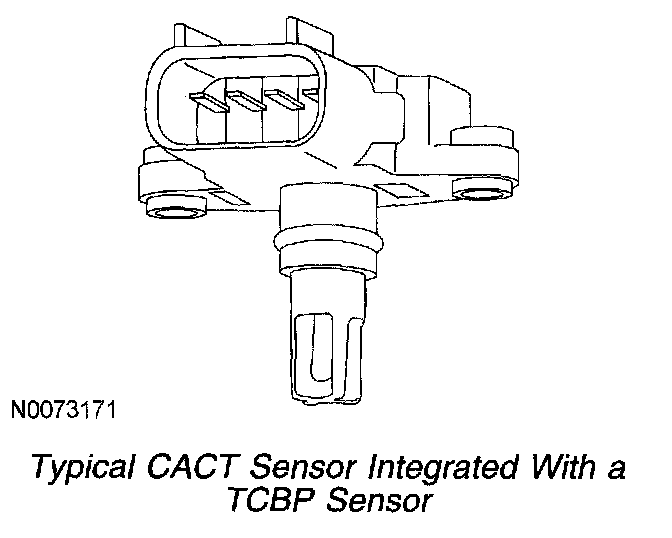 The CACT sensor is located in the intake air tube between the charge air cooler (CAC) and the throttle body. The CACT sensor measures the throttle inlet temperature. The powertrain control module (PCM) uses the information from the CACT sensor to refine the estimate of the air flow rate through the throttle and to determine the desired boost pressure. The CACT sensor for a speed density system is integral with the turbocharger boost pressure (TCBP) sensor.