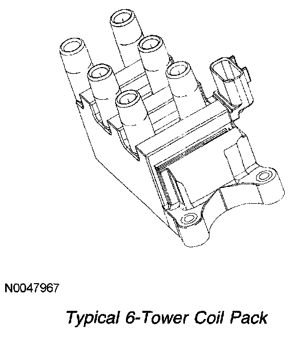 When the coil is fired by the PCM, spark is delivered through the matched pair towers to their respective spark plugs. The spark plugs are fired simultaneously and are paired so that as one fires on the compression stroke, the other spark plug fires on the exhaust stroke. The next time the coil is fired, the situation is reversed. The next pair of spark plugs fire according to the engine firing order.