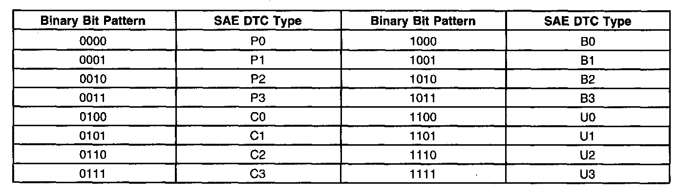 A list of failure type bytes is defined by SAE J2012 but is not described here because the PCM does not use the failure type byte.
