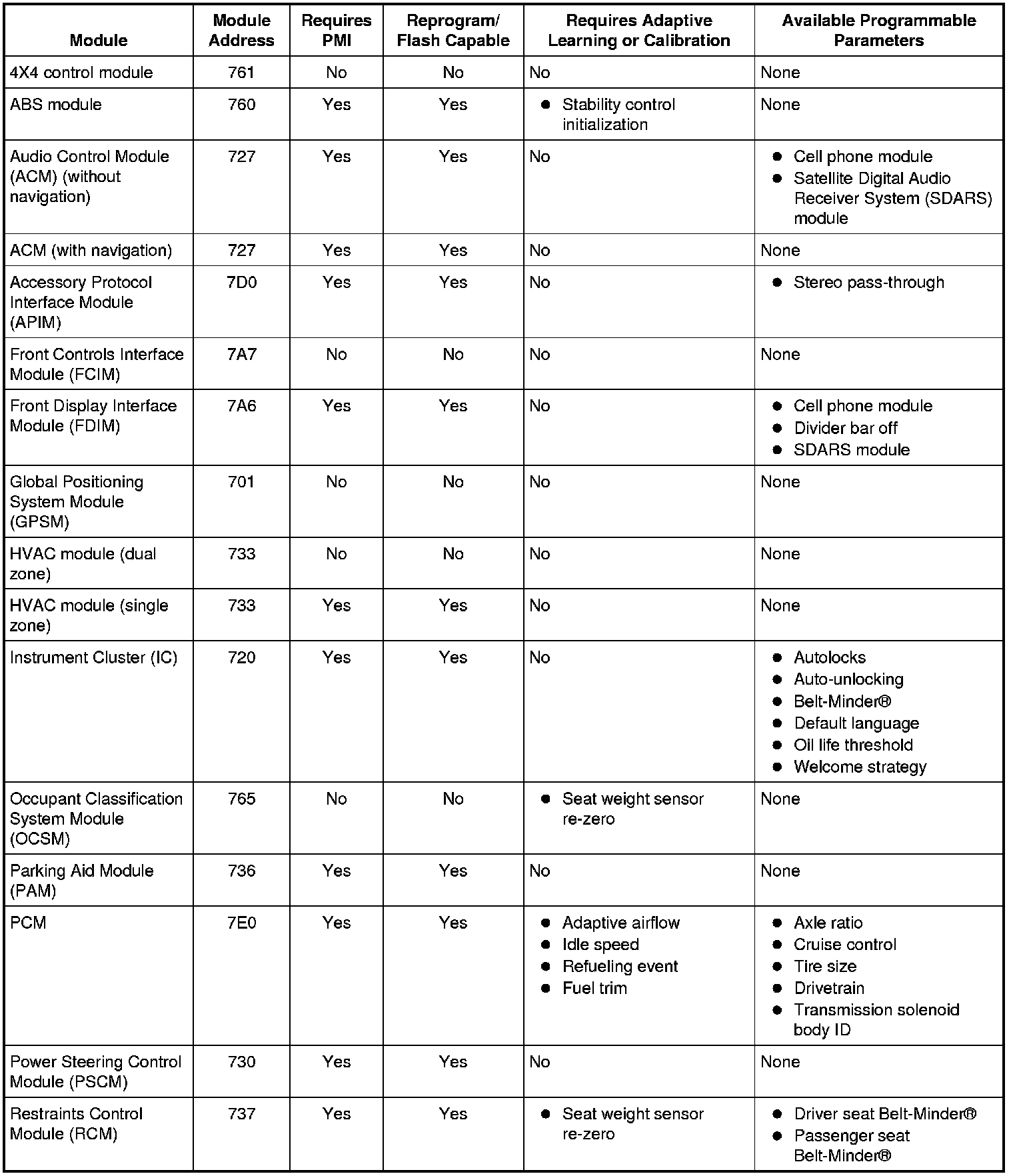 Programmable parameters are customer preference items that may be modified by the dealer via scan tool or in some cases modified by the customer following a procedure listed in the vehicle Owner's Literature. While many configuration options may exist for a module, only a few of these options are programmable parameters.