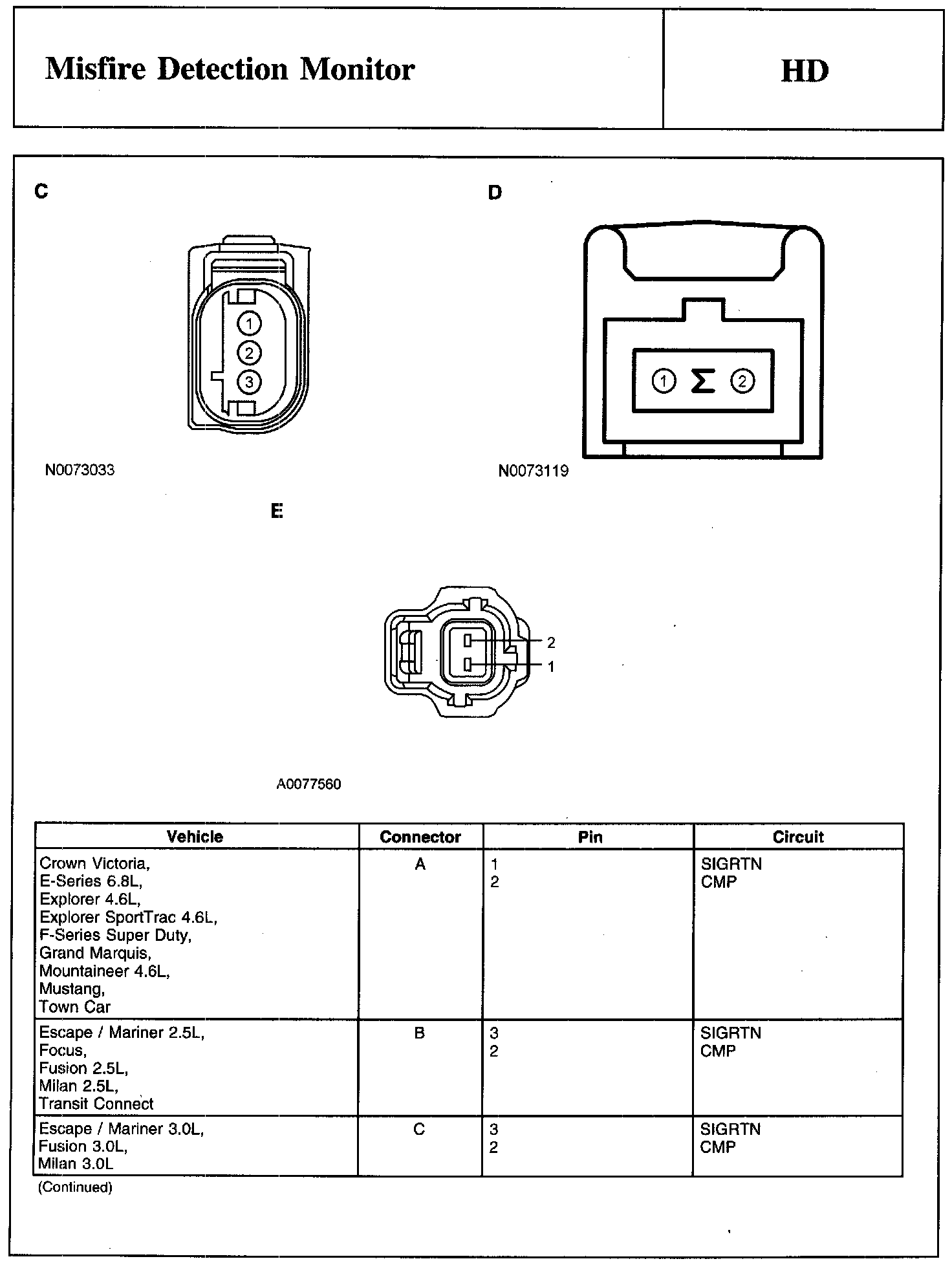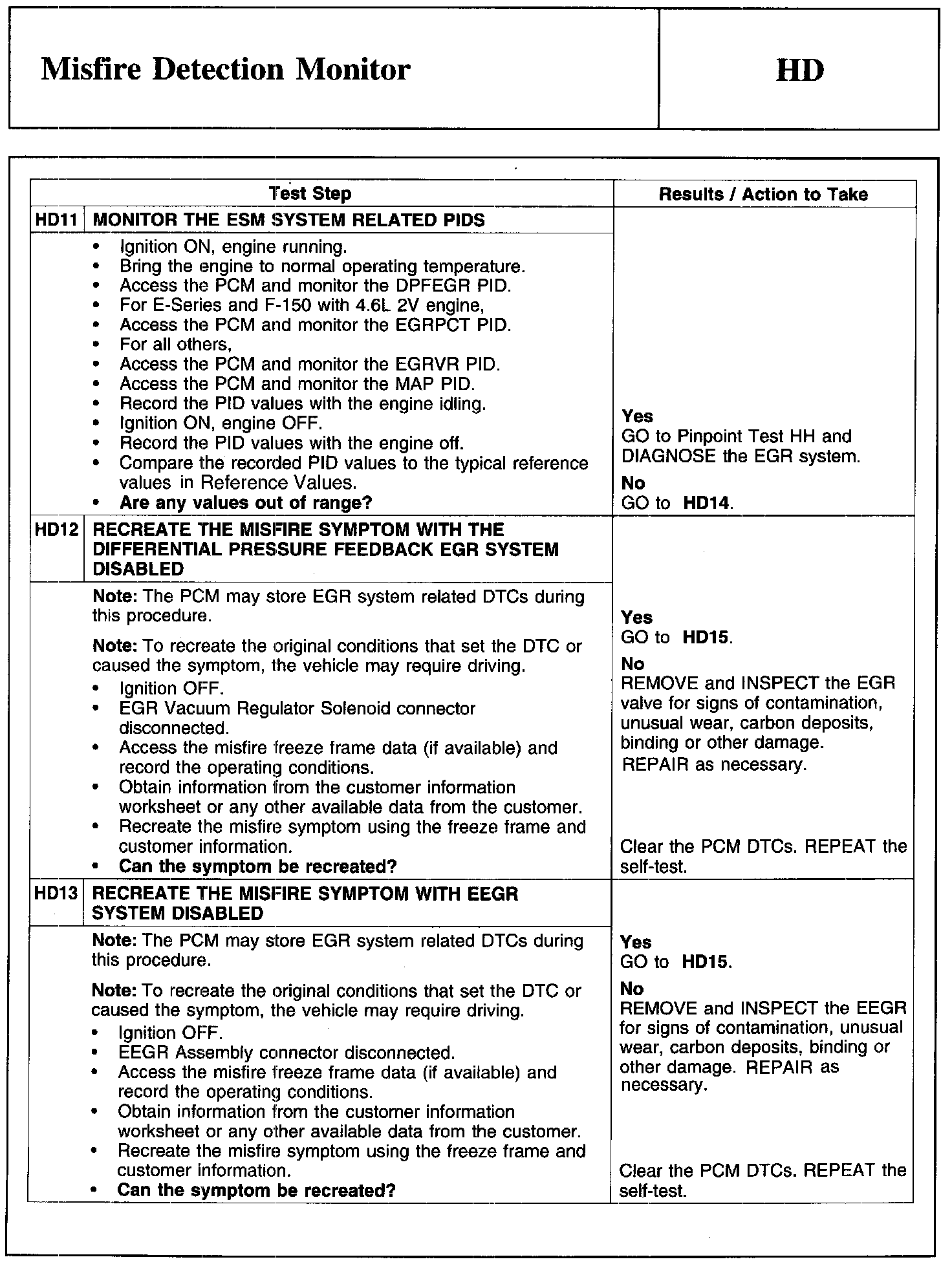 Home >> Ford >> 2010 >> Escape 2WD L4-2.5L >> Repair and Diagnosis >> Powertrain Management >> Computers and Control Systems >> Testing and Inspection >> Pinpoint Tests >> Test HD: Misfire Detection Monitor