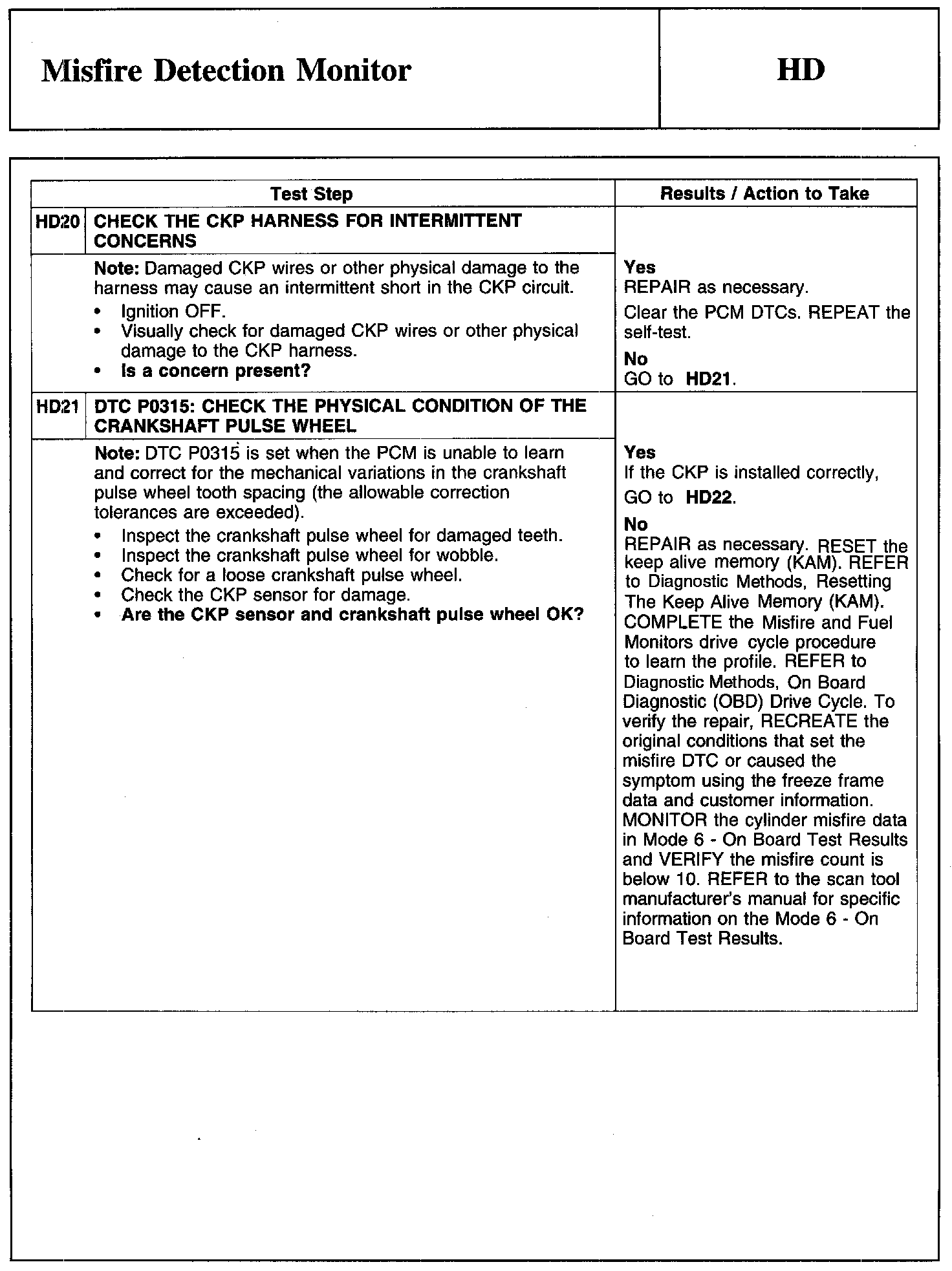 Test HD: Misfire Detection Monitor