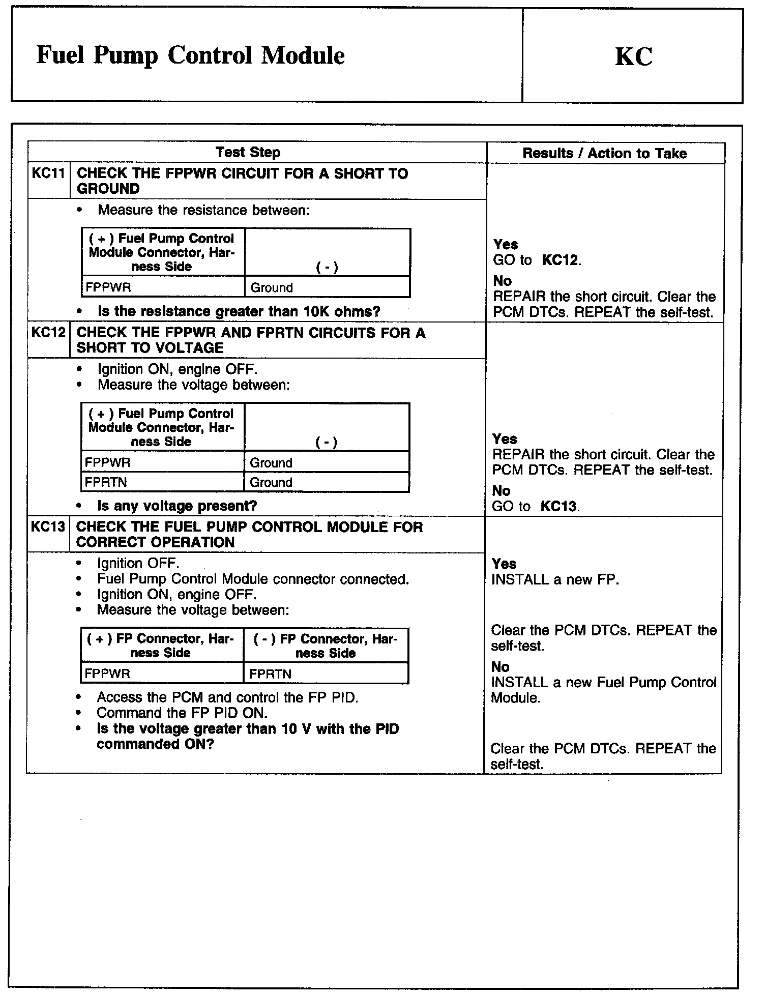 PINPOINT TEST KC: FUEL PUMP CONTROL MODULE