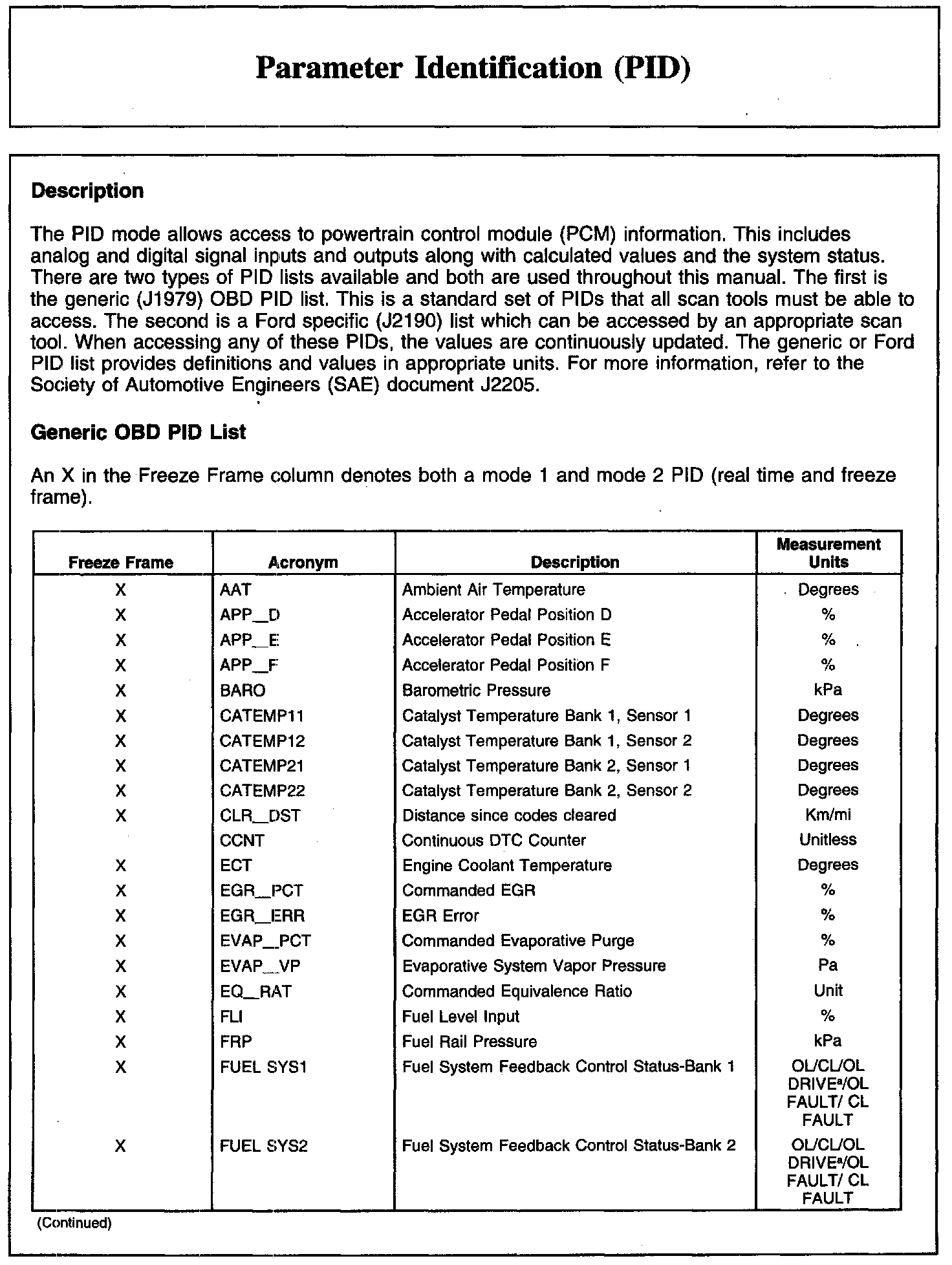 Home >> Ford >> 2010 >> Escape 2WD L4-2.5L >> Repair and Diagnosis >> Powertrain Management >> Computers and Control Systems >> Testing and Inspection >> Scan Tool Testing and Procedures >> Parameter Identification (PID)