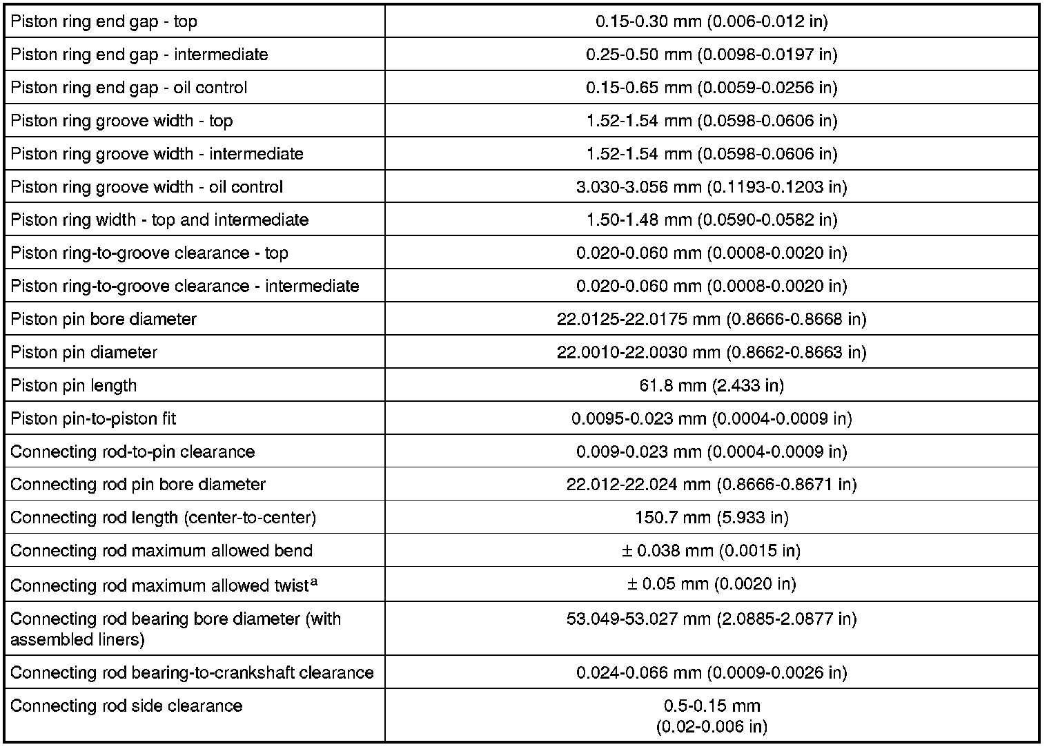 a The pin bore and crank bearing bore must be parallel and in the same vertical plane within the specified total difference when measured at the ends of a 203 mm bar, 105.5 mm on each side of rod centerline.