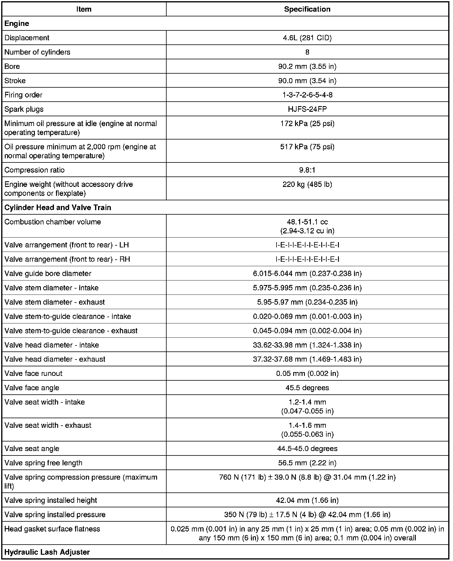 Home >> Ford >> 2010 >> Explorer 2WD V8-4.6L >> Repair and Diagnosis >> Specifications >> Mechanical Specifications >> Engine >> System Specifications >> General Specifications