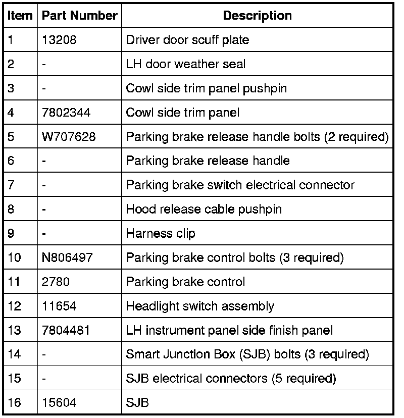 9. NOTE: Rotating the parking brake control counterclockwise allows enough access to clear the instrument panel reinforcement.