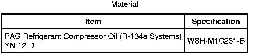 - If the amount of oil drained from the old A/C compressor is between 85-142 ml (3-5 oz), pour the same amount plus 30 ml (1 oz) of clean PAG Refrigerant Compressor Oil (R-134a Systems) (YN-12-D) WSH M1C231-B or equivalent into the new A/C compressor.