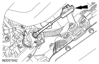 2. NOTICE: To prevent selector lever cable damage, do not apply force to the selector lever cable between the manual control lever and the selector lever cable bracket.