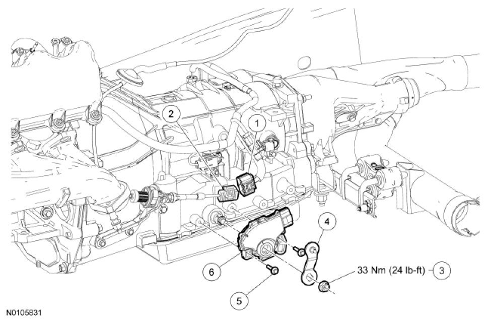 NOTE: When installing the selector lever cable end, make sure that the selector lever cable end is correctly installed onto the manual control lever. Pull back on the selector lever cable end to make sure that the selector lever cable end is correctly installed onto the manual control lever.