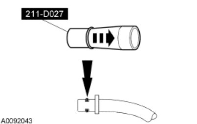 Using the Teflon(R) Seal Installer Set, install new O-ring seals (high-pressure hose pin, 3F886-AA, return hose pin 3F886-BA) onto the power steering lines.