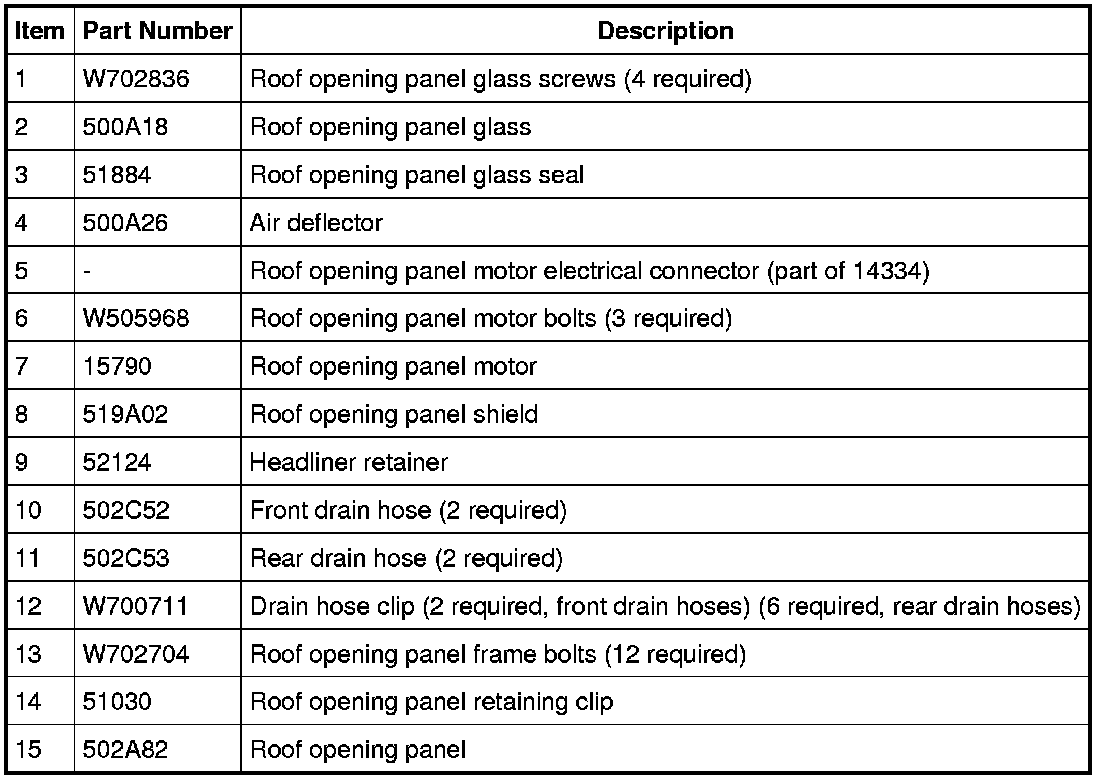 Roof Opening Panel - Exploded View
