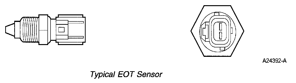 The EOT sensor measures the temperature of the engine oil. The sensor is typically threaded into the engine oil lubrication system. The PCM uses the EOT sensor input in conjunction with other PCM inputs to determine oil degradation.