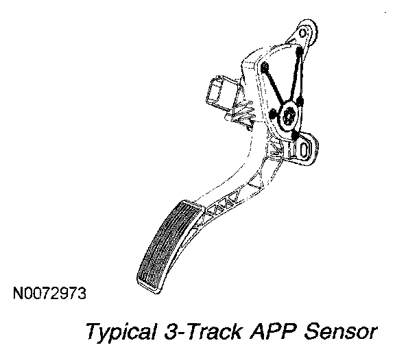 The APP sensor is an input to the powertrain control module (PCM) and used to determine the amount of torque requested by the operator. Depending on the application, either a 2-track or 3-track APP sensor is used.