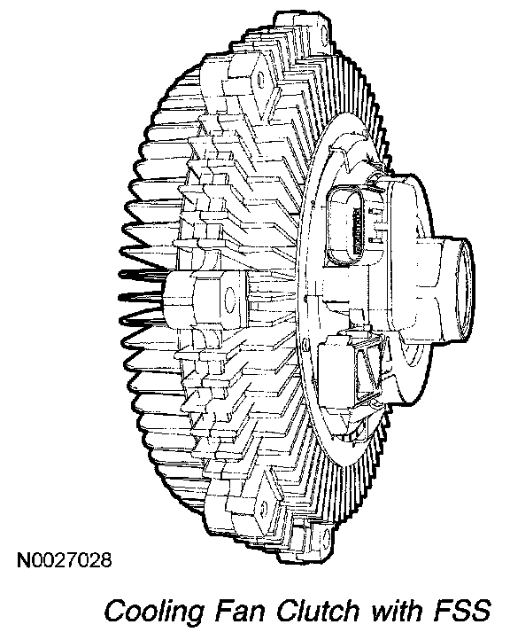 The FSS is a Hall-effect sensor that measures the cooling fan clutch speed by generating a waveform with a frequency proportional to the fan speed. If the cooling fan clutch is moving at a relatively low speed, the sensor produces a signal with a low frequency. As the cooling fan clutch speed increases, the sensor generates a signal with a higher frequency. The PCM uses the frequency signal generated by the FSS as a feedback for closed loop control of the cooling fan clutch. For additional information on the cooling fan clutch, refer to the Cooling Fan Clutch.