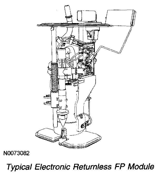 The FP module contains the fuel pump and sender assembly. The fuel pump is located inside the FP module reservoir and supplies fuel through the FP module manifold to the engine and FP module jet pump. The jet pump continuously refills the reservoir with fuel, and a check valve located in the manifold outlet maintains system pressure when the fuel pump is not energized. A flapper valve located in the bottom of the reservoir allows fuel to enter the reservoir and prime the fuel pump during the initial fill.