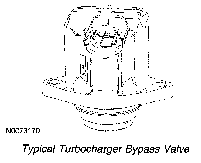 The TC wastegate regulating solenoid valve allows the powertrain control module (PCM) to indirectly control the turbocharger wastegates. The TC wastegate regulating solenoid valve controls the feedback pressure to a pneumatically powered wastegate diaphragm in order to control the boost pressure limit. When the compressor outlet pressure is allowed to increase, a pneumatically powered actuator opens each turbocharger wastegate and limits compressor outlet pressure.