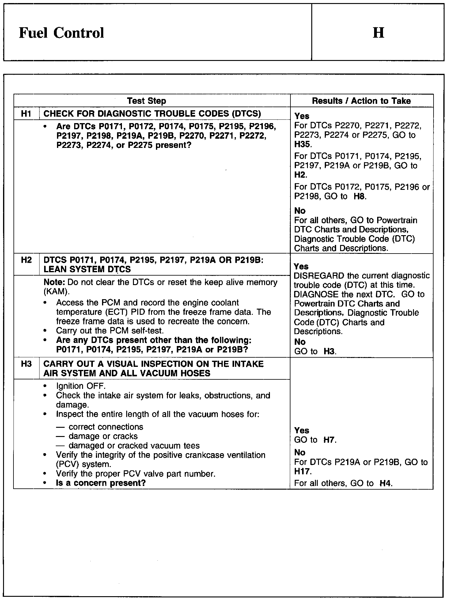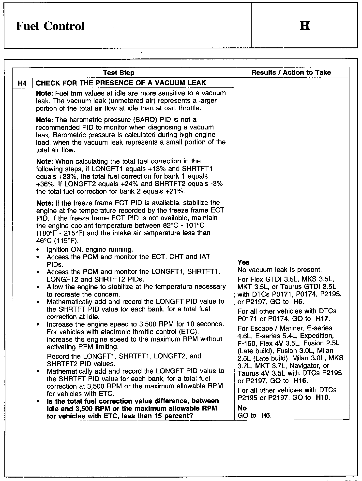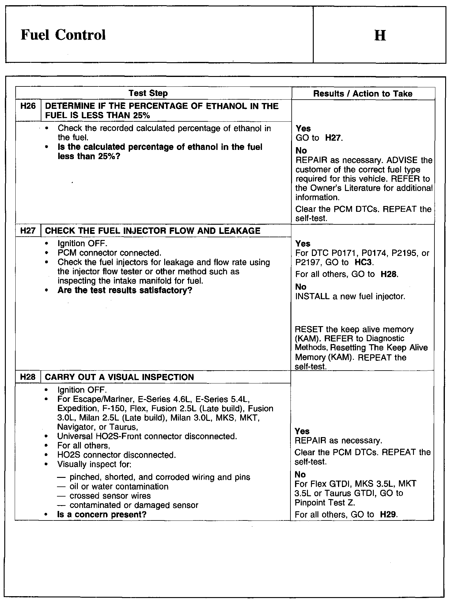 Home >> Ford >> 2010 >> Focus L4-2.0L >> Repair and Diagnosis >> Powertrain Management >> Computers and Control Systems >> Testing and Inspection >> Pinpoint Tests >> Test H: Fuel Control