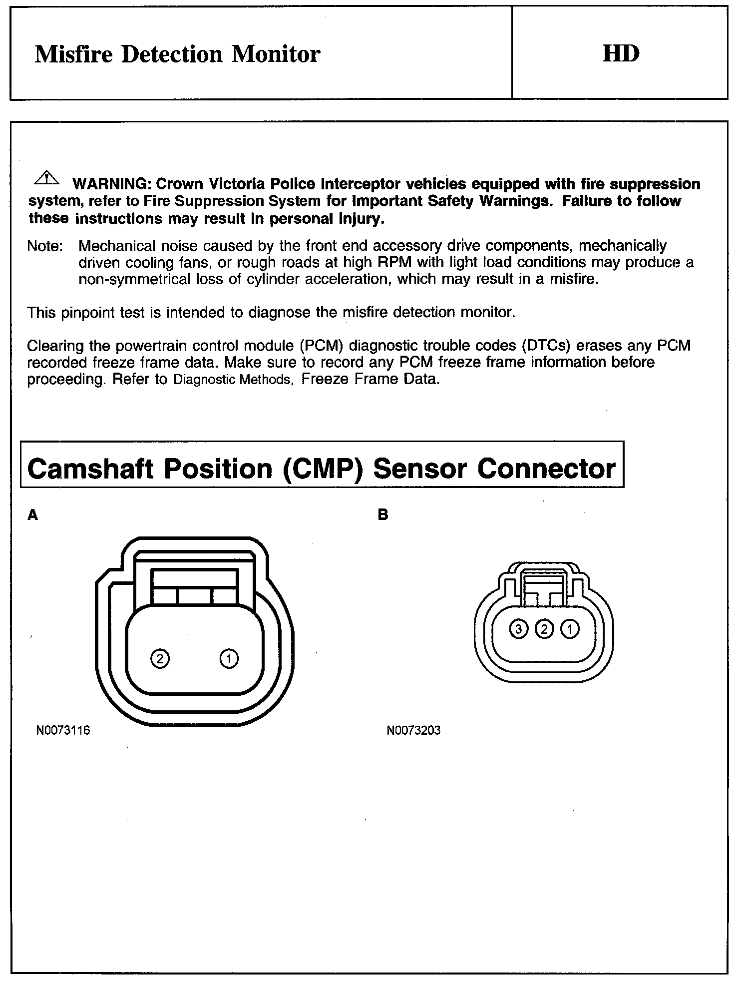 Warning, Note And Camshaft Position (CMP) Sensor Connector: