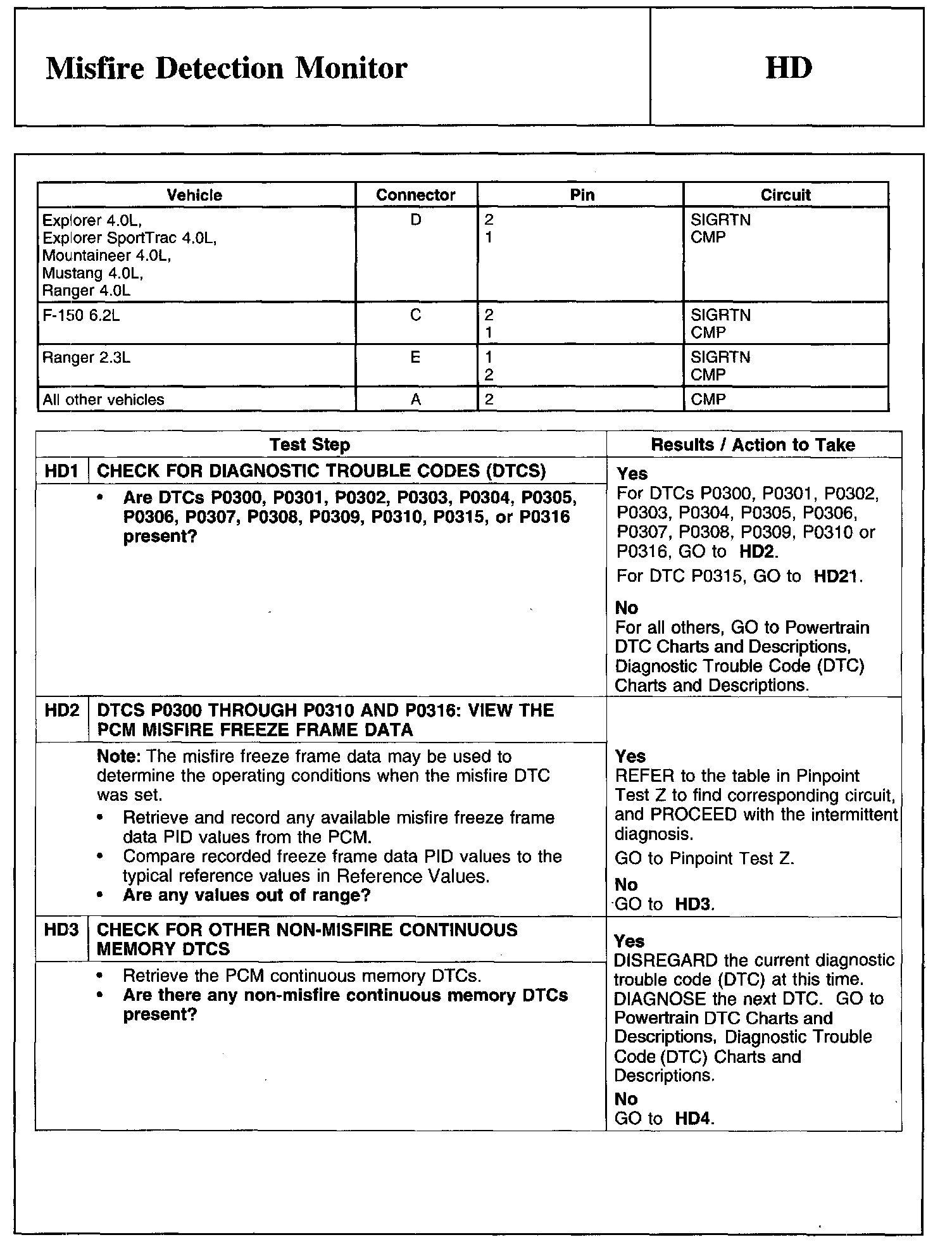 Home >> Ford >> 2010 >> Focus L4-2.0L >> Repair and Diagnosis >> Powertrain Management >> Computers and Control Systems >> Testing and Inspection >> Pinpoint Tests >> Test HD: Misfire Detection Monitor