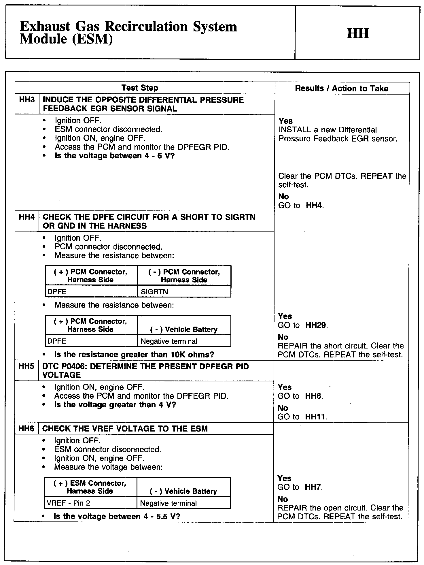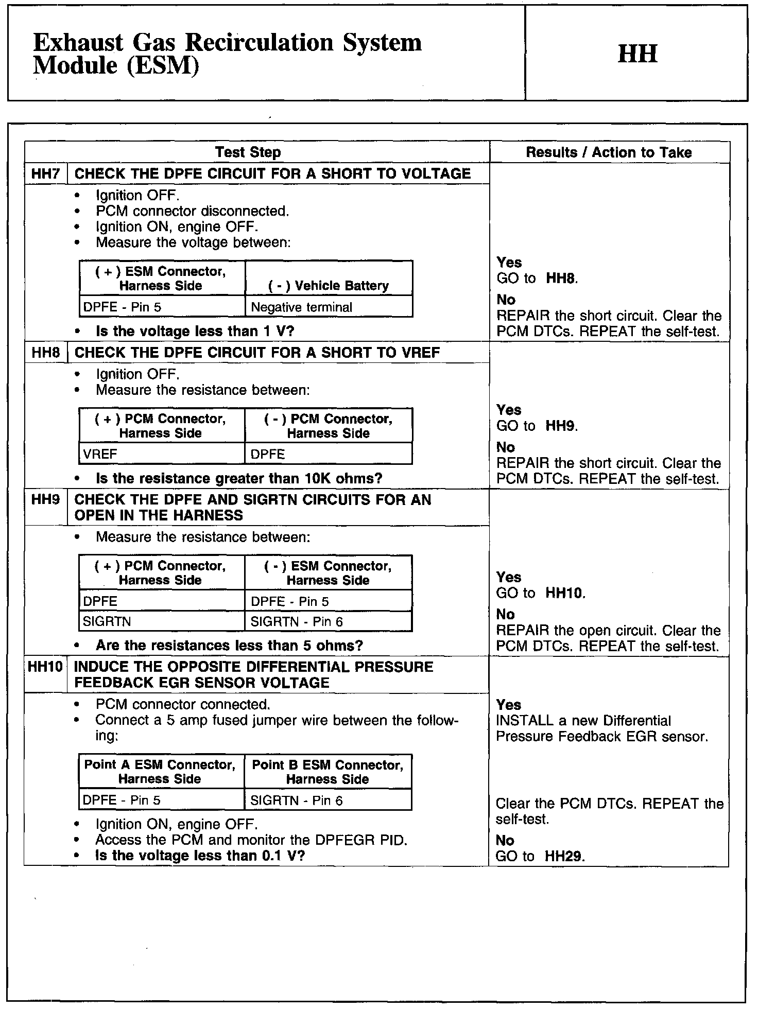 Home >> Ford >> 2010 >> Focus L4-2.0L >> Repair and Diagnosis >> Powertrain Management >> Computers and Control Systems >> Testing and Inspection >> Pinpoint Tests >> Test HH: Exhaust Gas Recirculation System Module (ESM)