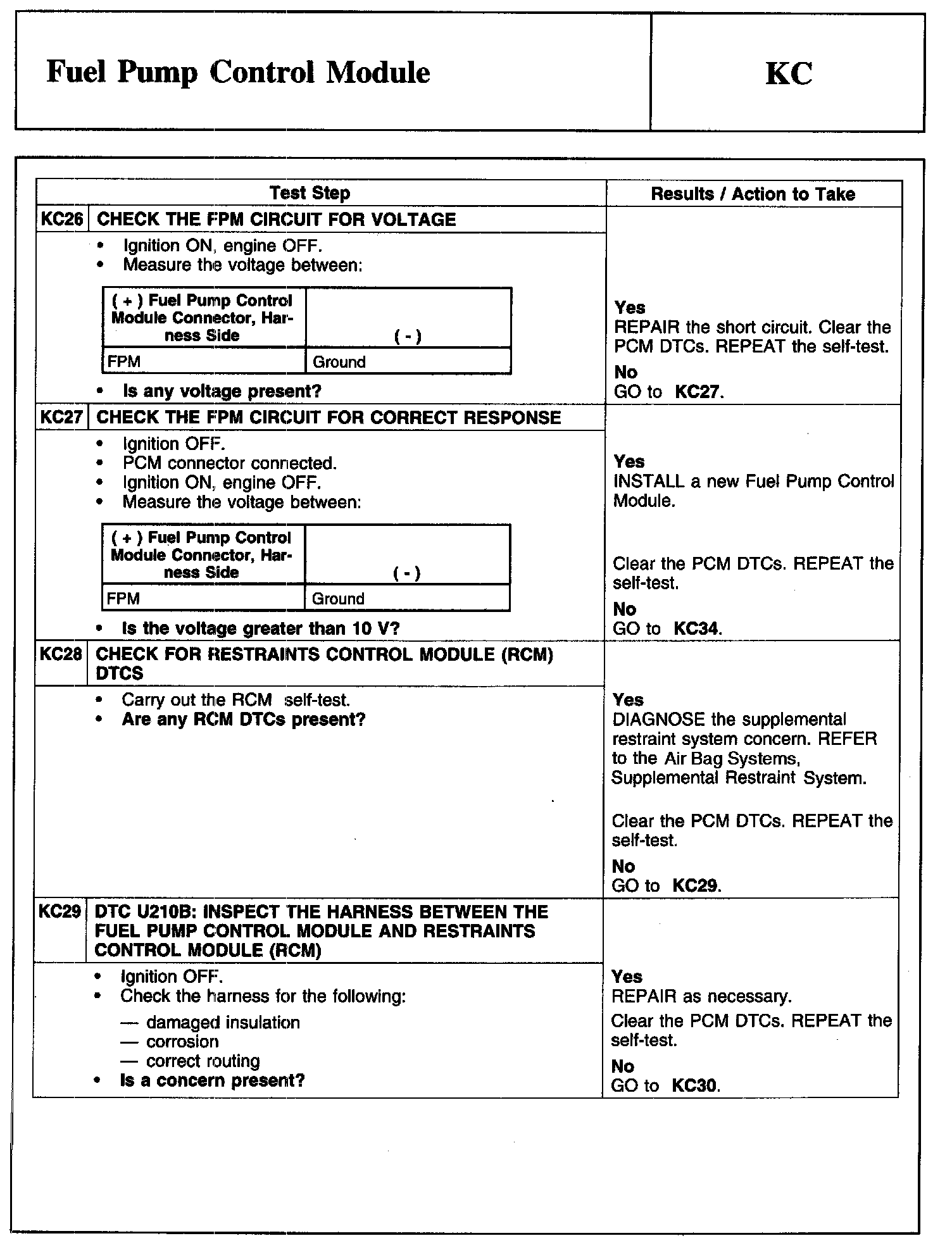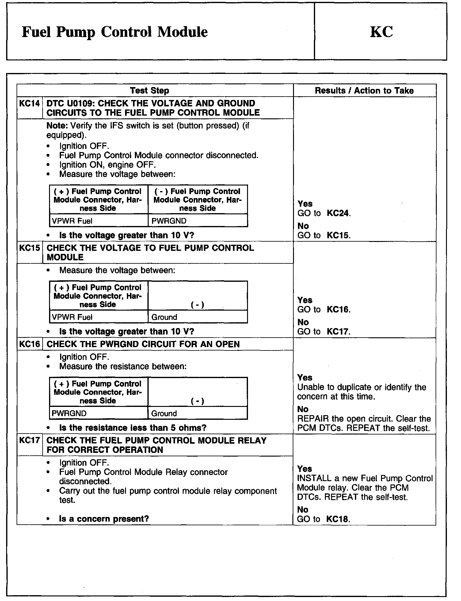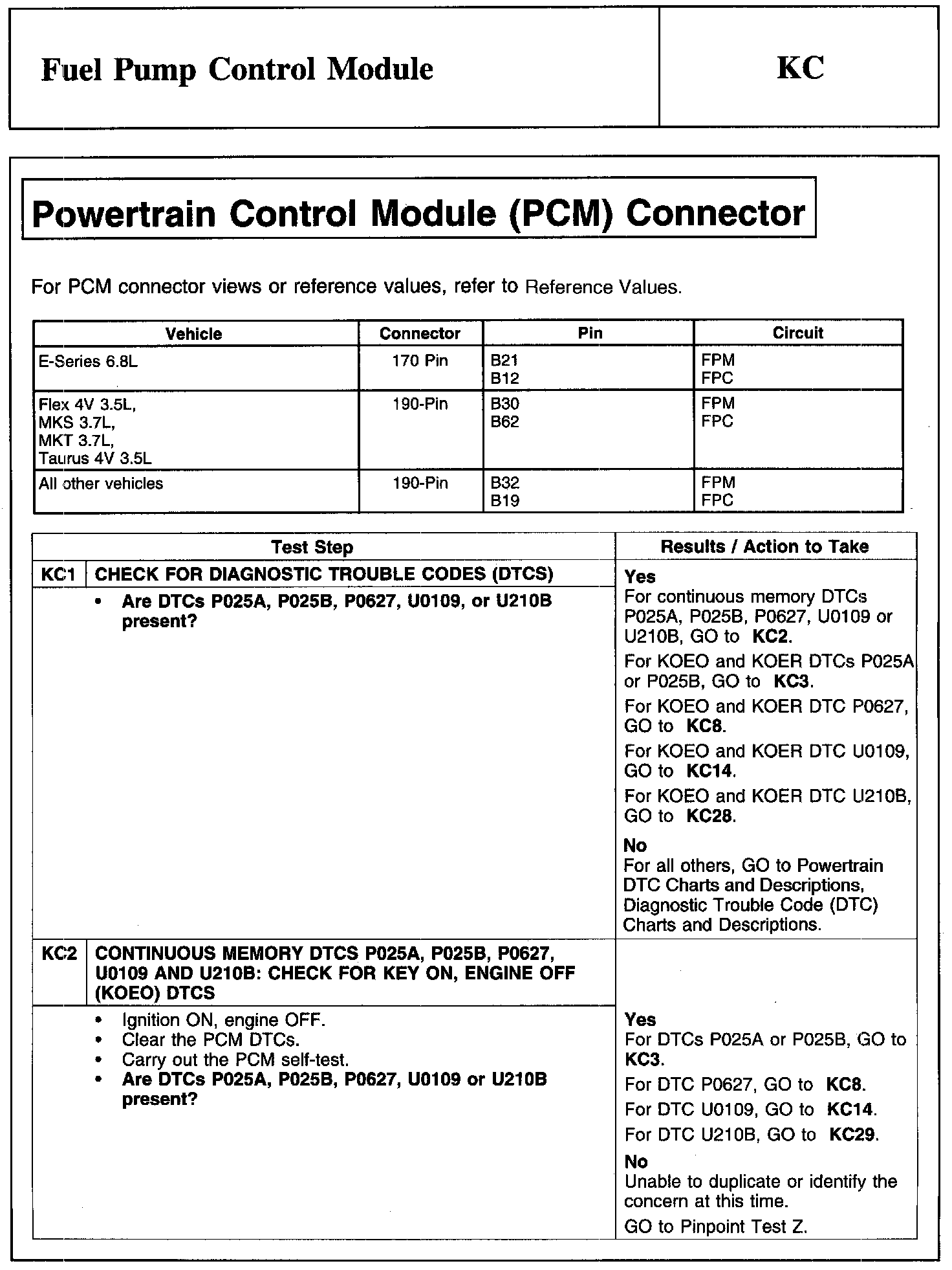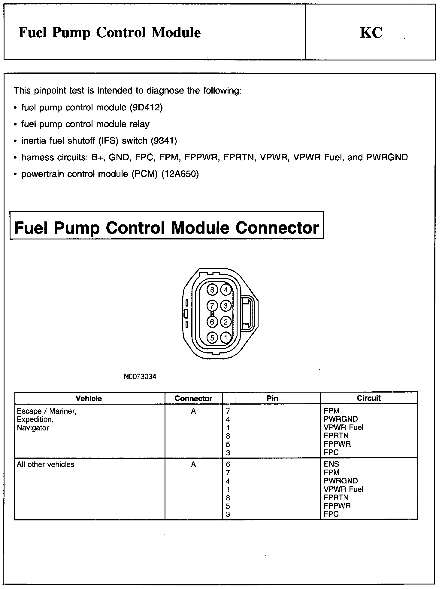 PINPOINT TEST KC: FUEL PUMP CONTROL MODULE
