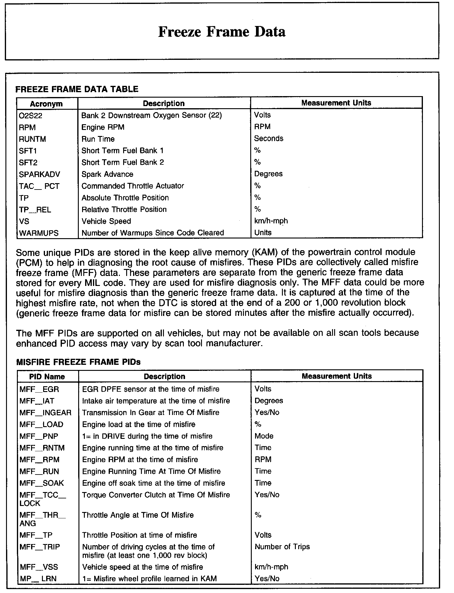 FREEZE FRAME DATA