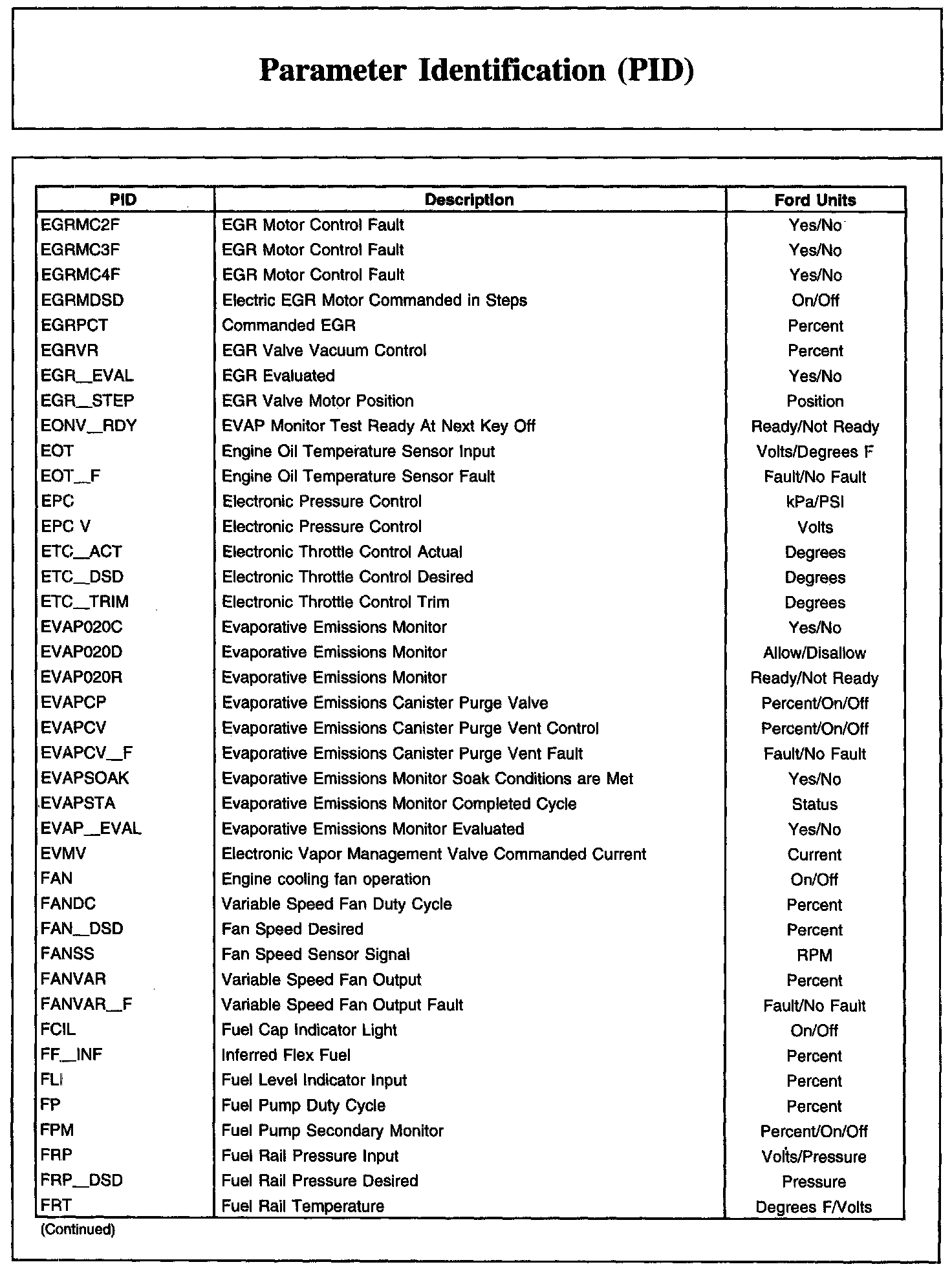 Home >> Ford >> 2010 >> Focus L4-2.0L >> Repair and Diagnosis >> Powertrain Management >> Computers and Control Systems >> Testing and Inspection >> Scan Tool Testing and Procedures >> Parameter Identification (PID)