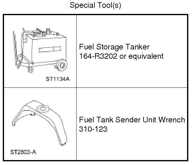 NOTE: Vehicles with an inaccurate or inoperable fuel gauge, follow the instructions for draining a fuel tank with more than one-half of a tank of fuel.