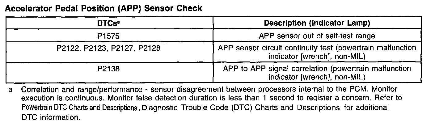 Accelerator Pedal Position (APP) Sensor Check: