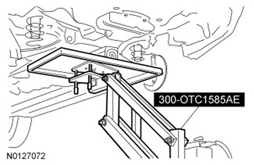 3. Remove the LH and RH rear lower arms. For additional information, refer to Section 204-02 .