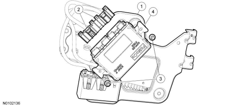 NOTE: Prior to the removal of the module, it is necessary to upload the module configuration information to a scan tool. This information must be downloaded into the new Body Control Module B (BCM-B) after installation. For additional information, refer to Information Bus.