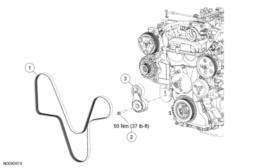 Front End Accessory Drive (FEAD) Exploded View - 2.3L with A/C