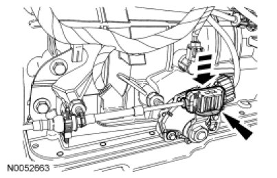 2. NOTICE: Tightening one screw before tightening the other may cause the Transmission Range (TR) sensor to bind or become damaged.