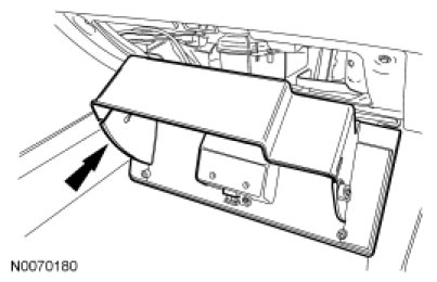 2. Disconnect the glove compartment rod. Rotate the glove compartment downward.