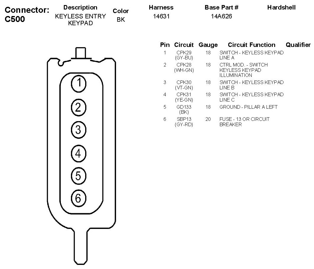 Keyless Entry Key-Pad: Diagrams