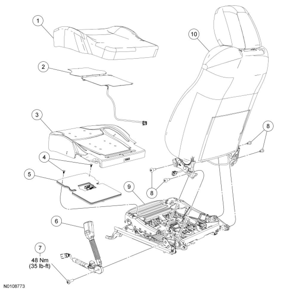 Home >> Ford >> 2010 >> Taurus FWD V6-3.5L >> Repair and Diagnosis >> Body and Frame >> Seats >> Seat Temperature Control Module >> Service and Repair >> Seat - Exploded View, Front