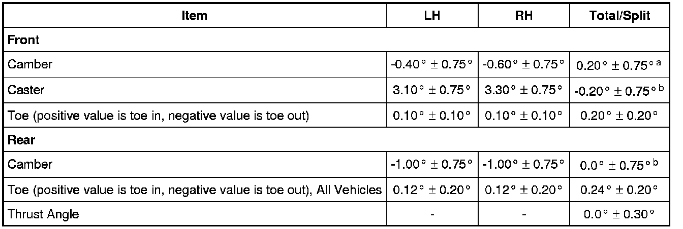 a Camber Total/Split = LH Camber - RH Camber