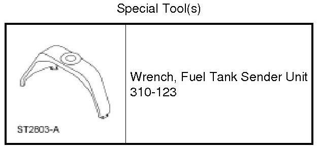 Install the Fuel Tank Sender Unit Wrench and remove the FP module lock ring.